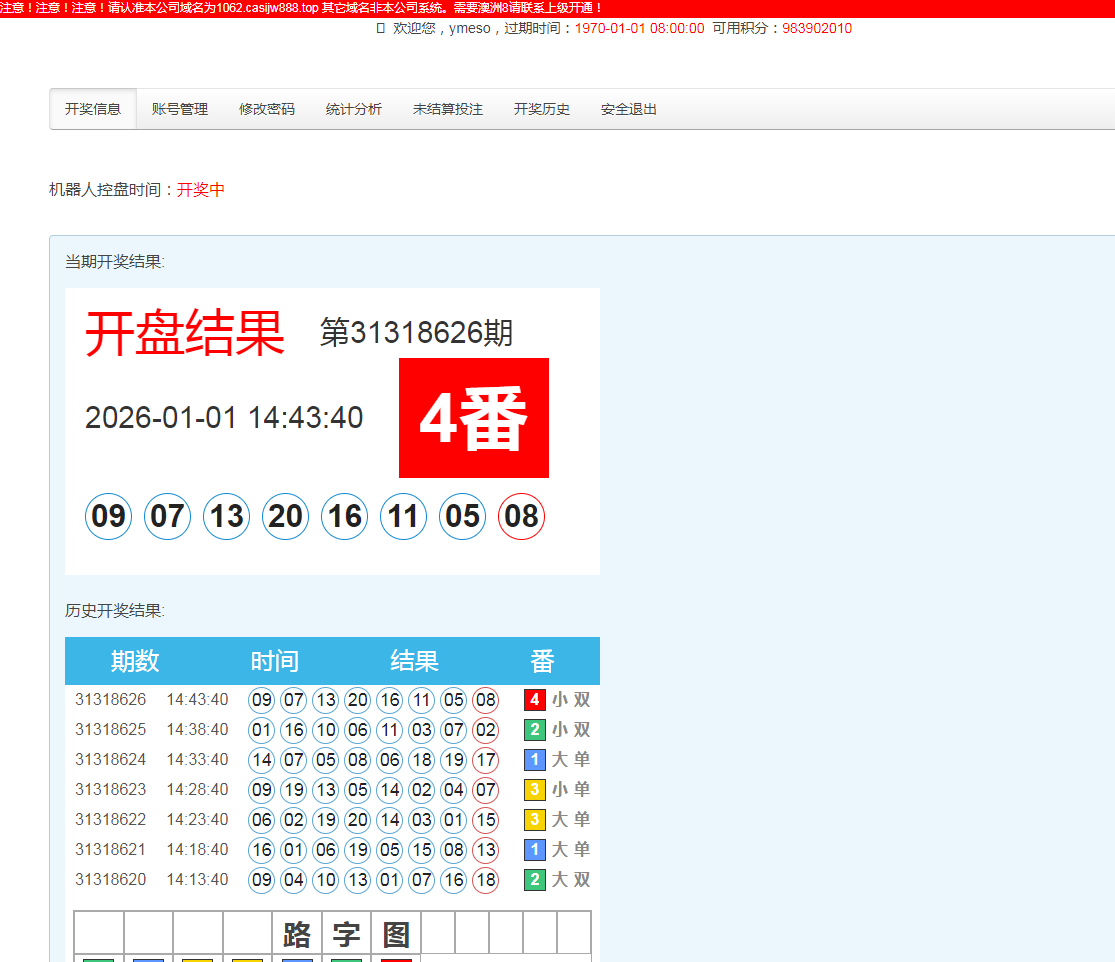 开奖对接的是168,可以正常采集开奖结算,测试除了功能单一其他也还行,总后台没有开下级代理账户的地方,前端需要在机器人后台创建玩家后复制对应链接才可以进入