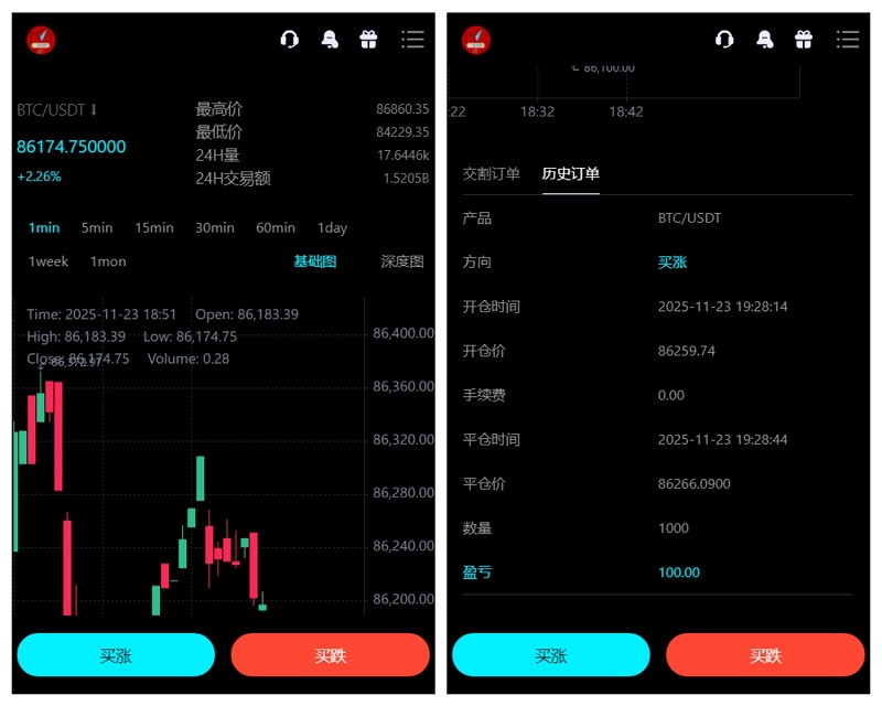 这套项目的期权交易其实就是秒合约,在别的交易所这个叫做秒合约,结算正常